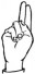 На ћирилици написано НИКОДИЈЕ СРЕТЕНОВИЋ састоји се из 18 слова [?]. Исписано ћириличном једноручном азбуком за глувонеме: